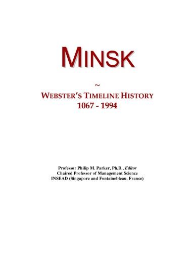 Webster's bibliographic and event-based timelines are comprehensive in scope, covering virtually all topics, geographic locations and people. They do so from a linguistic point of view, and in the case of this book, the focus is on "Minsk," including when used in literature (e.g. all authors that might have Minsk in their name). As such, this book represents the largest compilation of timeline events associated with Minsk when it is used in proper noun form. Webster's timelines cover bibliographic citations, patented inventions, as well as non-conventional and alternative meanings which capture ambiguities in usage. These furthermore cover all parts of speech (possessive, institutional usage, geographic usage) and contexts, including pop culture, the arts, social sciences (linguistics, history, geography, economics, sociology, political science), business, computer science, literature, law, medicine, psychology, mathematics, chemistry, physics, biology and other physical sciences. This "data dump" results in a comprehensive set of entries for a bibliographic and/or event-based timeline on the proper name Minsk, since editorial decisions to include or exclude events is purely a linguistic process. The resulting entries are used under license or with permission, used under "fair use" conditions, used in agreement with the original authors, or are in the public domain. Read more...